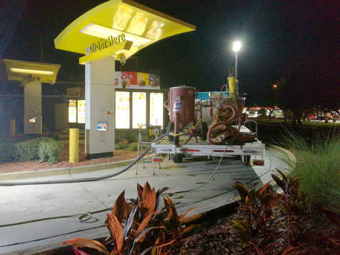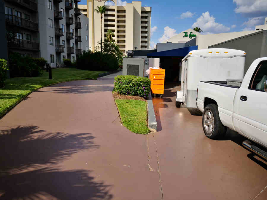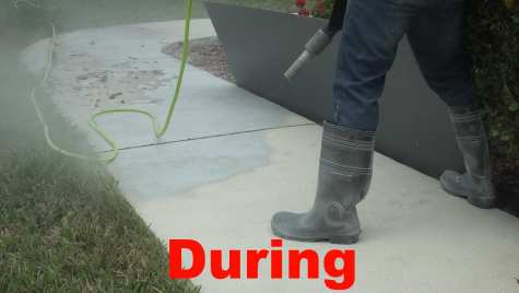 It was a lot less expensive than blasting so Enclave went that route and painted ½ mile of sidewalk a 2nd time. Next time it rained, more guests slipped and fell. Ut oh! They called me up and gave me approval for blasting the sidewalk. But now it had 2 coats of paint on it and not 1. Not knowing what that 2nd coat was like, I went back and did another test blast.